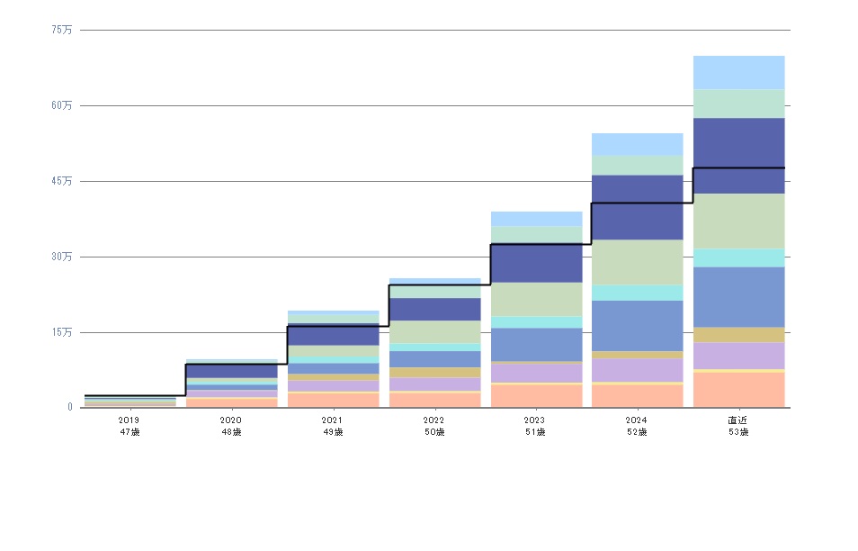 成果の方も、コロナショックや戦争、リーマンショックのような金融恐慌がない限りは現状を維持できると思います。原資が2倍になるので評価額も2倍、評価益が40~60万を見込んでいます。